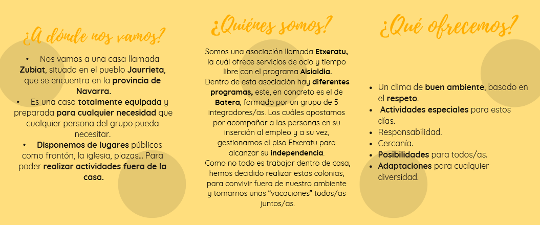 Las colonias de semana santa del programa Aisialdia, son propuestas ligadas, en la actualidad al ocio, aunque la tradición de la que proceden, así como una observación en profundidad de las mismas, nos muestra el potencial que tienen como actividad pedagógica incluida en la educación no formal. En cualquier caso, dichos objetivos se han ido modificando adaptándose a la evolución de las necesidades sociales y los diferentes cambios.